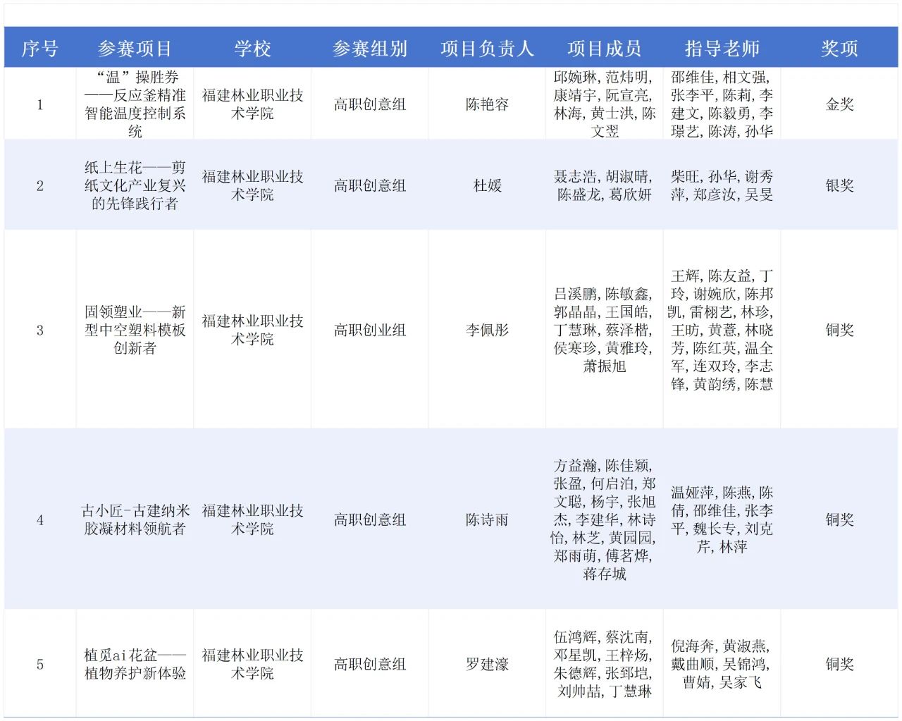 福建省大学生创新大赛(2024)职教赛道暨第八届黄炎培海峡职业教育创新创业大赛福建林业职业技术学院获奖名单