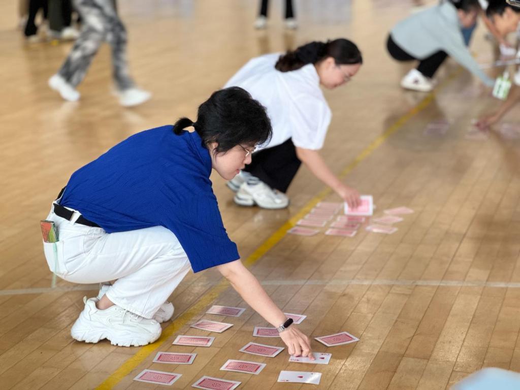 随后,在紧张而又充满乐趣的心理素质团建环节中,辅导员参与了“萝卜蹲”“翻纸牌”“驿站传书”“同心击鼓”等活动体验,增进了彼此之间的了解和信任,共同体验团队合作的乐趣,起到放松身心的良好效果。现场笑声连连,气氛热烈。