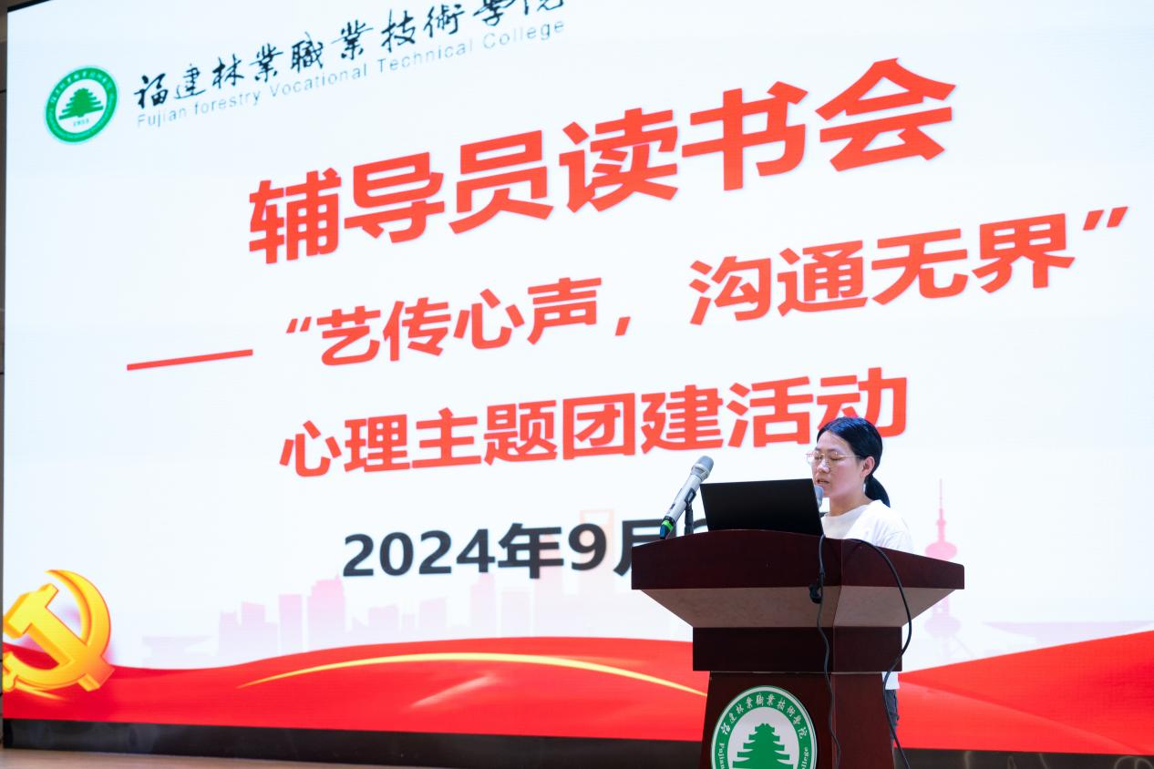 活动伊始,曾秀云代表艺术传媒系欢迎各位学工同仁参加本次读书会活动。她介绍了艺术传媒系的基本情况、专业建设、师资队伍、学生工作情况。她指出此次辅导员读书会聚焦心理健康主题,通过体验式的团建拓展活动和专业理论讲座形式开展,有助于提升辅导员的心理素养和教育能力,促进团队凝聚力与师生心理健康,助力辅导员队伍建设和学生全面发展。