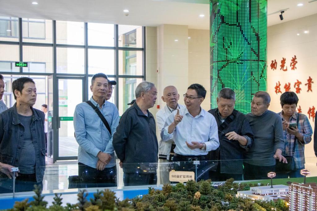 学院副院长李肇锋带领老同志参观江南校区的沙盘、办学成果展览馆等。在江南校区沙盘前,李副院长详细地介绍了校区的整体规划布局。在办学成果展览馆里,老同志们看到了学院多年来培养的优秀学子的成果展示,让他们深感学院的育人成果丰硕。随后,老同志们继续乘坐校车环校园参观,对学院的蓬勃发展,老同志们赞不绝口。大家在轻松愉快的氛围中相互交流着,回忆着过去艰苦的办学条件,对比着现在的优越环境,对学院的发展充满了信心。