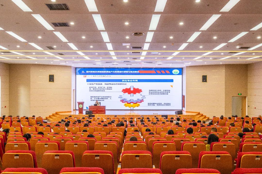 刘健教授以“习近平总书记关于新质生产力系列重要论述”为引入,生动解读了新质生产力的内涵与基本特征,指明了现代职教体系赋能新质生产力发展运行逻辑与推进路径。刘健指出,面对新形势新挑战,现代职业教育体系建设赋能新质生产力发展,以产业需求为导向,科学设置专业并实施动组态调整、专业人才培养方案重构,以产教融合为支撑,建专业群、优化课程结构,更新教育教学内容,强化师资队伍建设,建设市域联合体、行业产教融合共同体,为中国式现代化贡献职教智慧和力量。刘健教授的报告立意高远,内容丰富,既有理论高度,又有实践深度,对学院准确理解和全面把握党的二十届三中全会精神,进一步把思想和行动统一到以习近平同志为核心的党中央决策部署上来,深化现代职教体系建设赋能新质生产力发展,具有很强的指导意义。