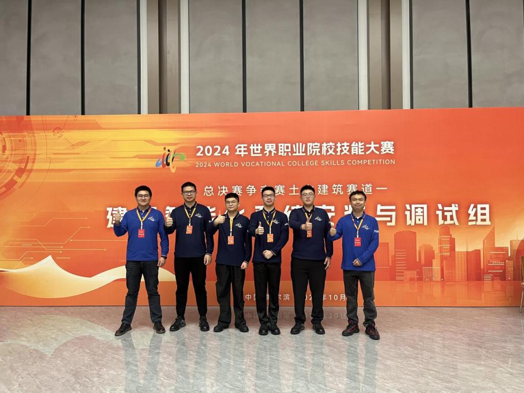 本网讯 10月28日至31日,在2024年世界职业院校技能大赛(高职组)总决赛“建筑智能化系统安装与调试”赛项中,我院林剑雄、连林炜、任熠、官豪轩四位同学在建筑工程系主任彭忠伟带队以及卢健杰、蒋一鸣老师的指导下,从来自全国29个省、市、自治区的56个参赛队、207名选手中脱颖而出,凭借扎实专业素养、现场卓越表现一举夺得全国金奖,指导教师获优秀指导教师荣誉称号。