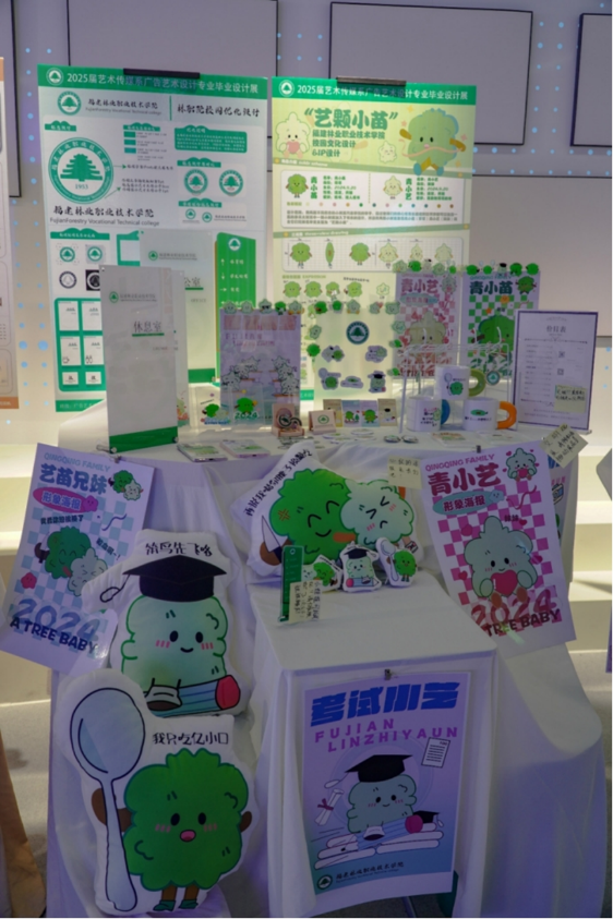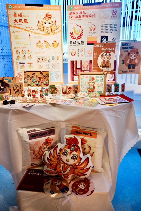 本网讯 兿·林空间,创意无限!2025届广告艺术设计毕业展于11月14日-12月16日在艺术楼展厅一楼举行。本次毕业展围绕校园文化、非遗以及农产品三个主题开展,由学生独立设计IP、LOGO。广告艺术设计的学子大展身手、各显神通,用他们最天马行空的想象力和独具匠心的创造力,让一件件创意作品的落地组成了毕业展的特别篇章。