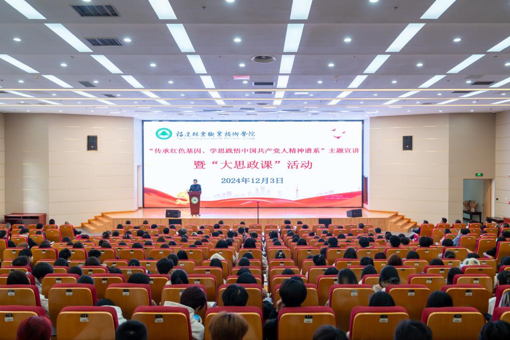 本网讯 为深入学习宣传贯彻党的二十届三中全会精神,贯彻落实习近平总书记关于学校思政课建设的重要指示精神,深入实施时代新人铸魂工程,弘扬劳模精神、谷文昌精神、“洋林精神”,教育引导广大学生涵养“人当如竹、高风亮节,亦当如树,荫遮一方”的新时代林人精气神,增强践行“两个维护”的高度自觉、坚定爱国奋斗挺膺担当,2024年12月3日,学院在江南校区图书馆报告厅举办“传承红色基因、学思践悟中国共产党人精神谱系”主题宣讲暨“大思政课”活动,以实际行动感悟时代脉搏,推动全省林业系统先进典型事迹进校园。活动由院党委委员、学院副院长黄晖主持。