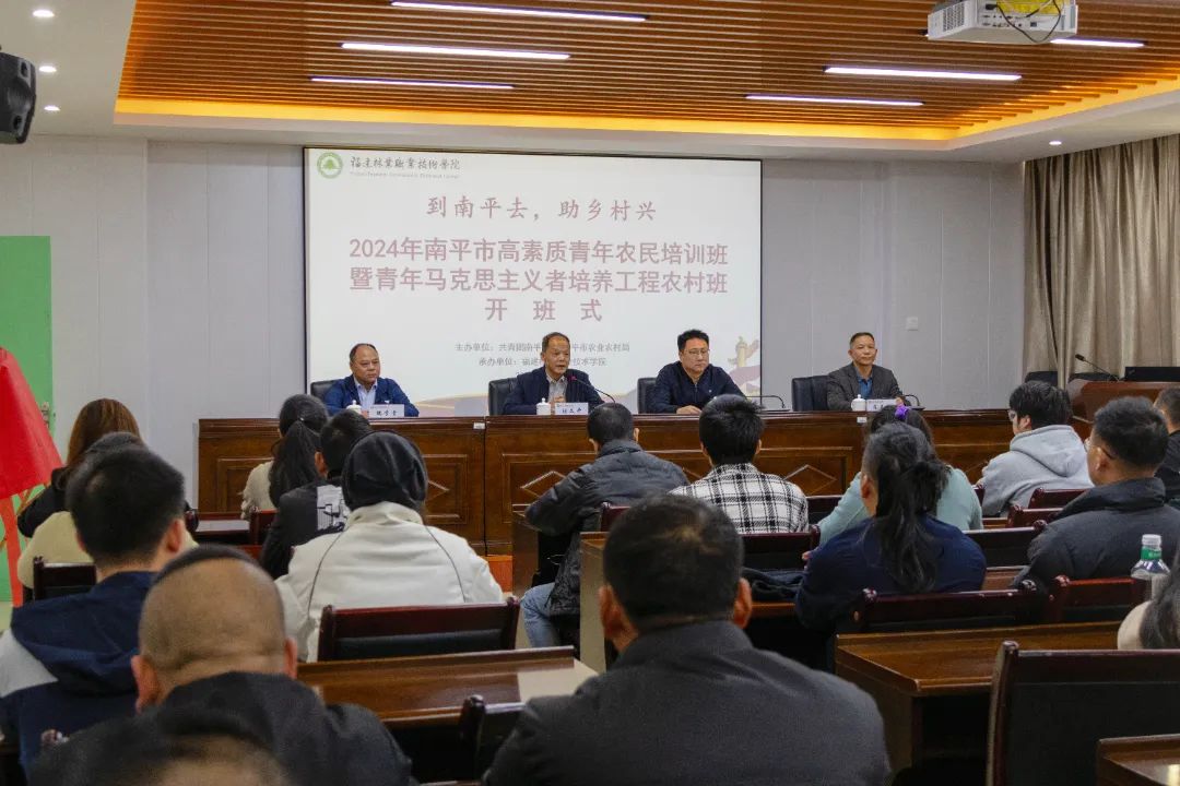本网讯 2024年12月2日,南平市高素质青年农民培训班暨青年马克思主义者培养工程农村班在我院江南校区顺利开班。福建林业职业技术学院党委副书记、院长刘文开,共青团南平市委书记张嘉明,南平市农业农村局四级调研员魏学贵,福建林业职业技术学院继续教育学院副院长陈元镇出席开班式。开班式由陈元镇主持。