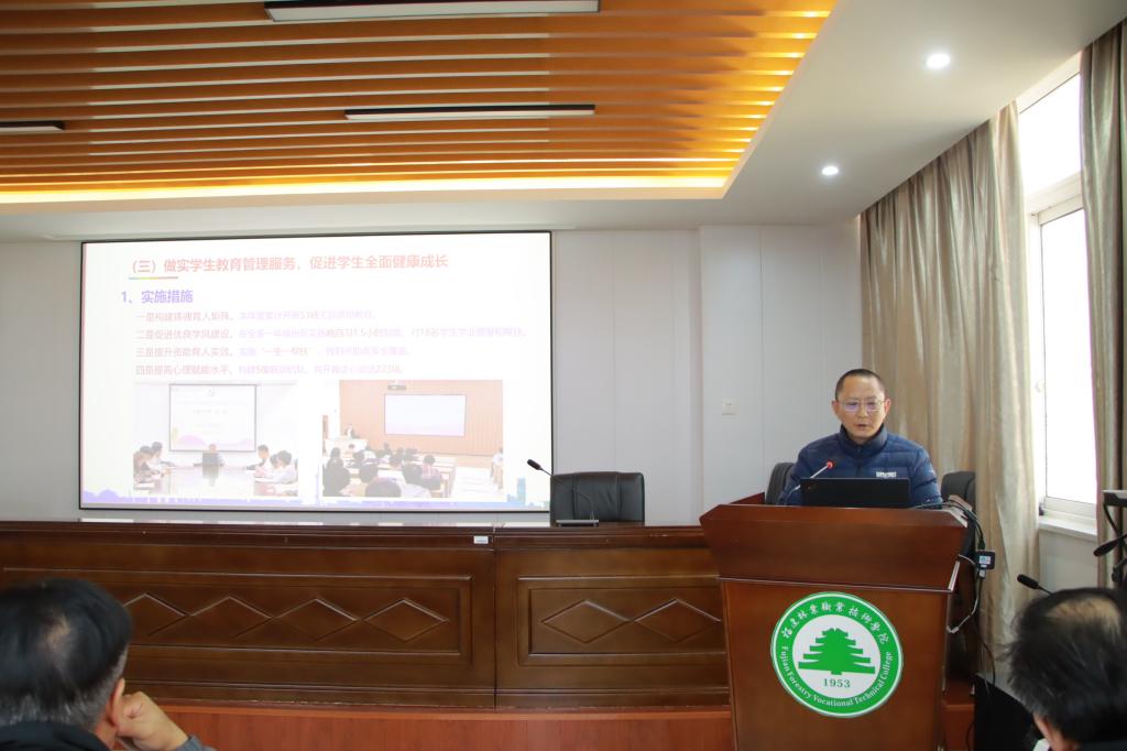 陈建辉书记作总结讲话,他充分肯定了各基层党组织在过去的一年中所取得的工作成效,就进一步加强学院党的建设提出具体要求。一要提高政治站位,强化责任担当。作为党组织书记,要深刻认识到基层党建工作的重要性,切实增强抓好党建工作的责任感和使命感,把抓好基层党建作为首要任务,坚持用改革精神和严的标准管党治党,确保党中央和上级党组织的决策部署在基层落地生根。加强师德师风建设,以教育家精神铸魂强师,推动学院高质量发展。二要聚焦中心工作,服务中心大局。要紧紧围绕学院的中心工作,把党建工作与业务工作紧密结合起来,以党建引领业务发展,以业务成效检验党建成果,实现党建与业务同频共振、互促共进。要提高工作站位,追求卓越,把党建工作作为推动学院各项事业高质量、高水平发展的重要保障,凝聚广大师生力量,推动学院向“国双高”“职教本科”目标奋勇前进。三要坚持问题导向,狠抓整改落实。针对述职中提出的问题和不足,深入分析原因,制定切实可行的整改措施,明确整改时限,确保整改到位,推动基层党建工作全面进步、全面过硬。四要加强队伍建设,激发组织活力。要始终把队伍建设作为基层党建工作的重点,加强党员教育管理和监督,严明纪律作风,不断提升党员队伍、师资队伍的整体素质。要建立健全党员激励机制,形成比学赶帮超的良好氛围,推动基层党组织建设不断迈上新台阶。五要加强自身建设,树立良好形象。要坚持不懈强化党的创新理论武装,提升政治素养和业务能力。要严于律己、清正廉洁,以身作则、率先垂范,树立良好的形象和威信。要密切联系群众,积极为师生排忧解难,以实际行动赢得师生的信任和支持。
