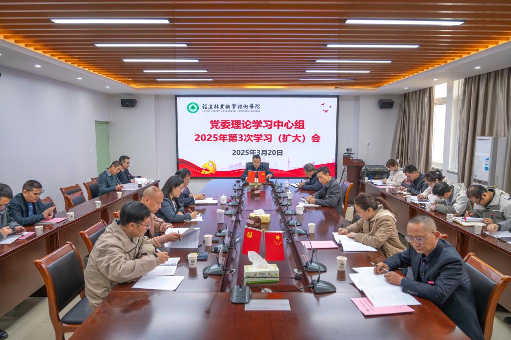 本网讯 3月20日上午,院党委书记陈建辉在江南校区行政楼五楼会议室主持召开2025年第3次党委理论学习中心组学习(扩大)会暨“2025年全国两会精神”专题学习会。