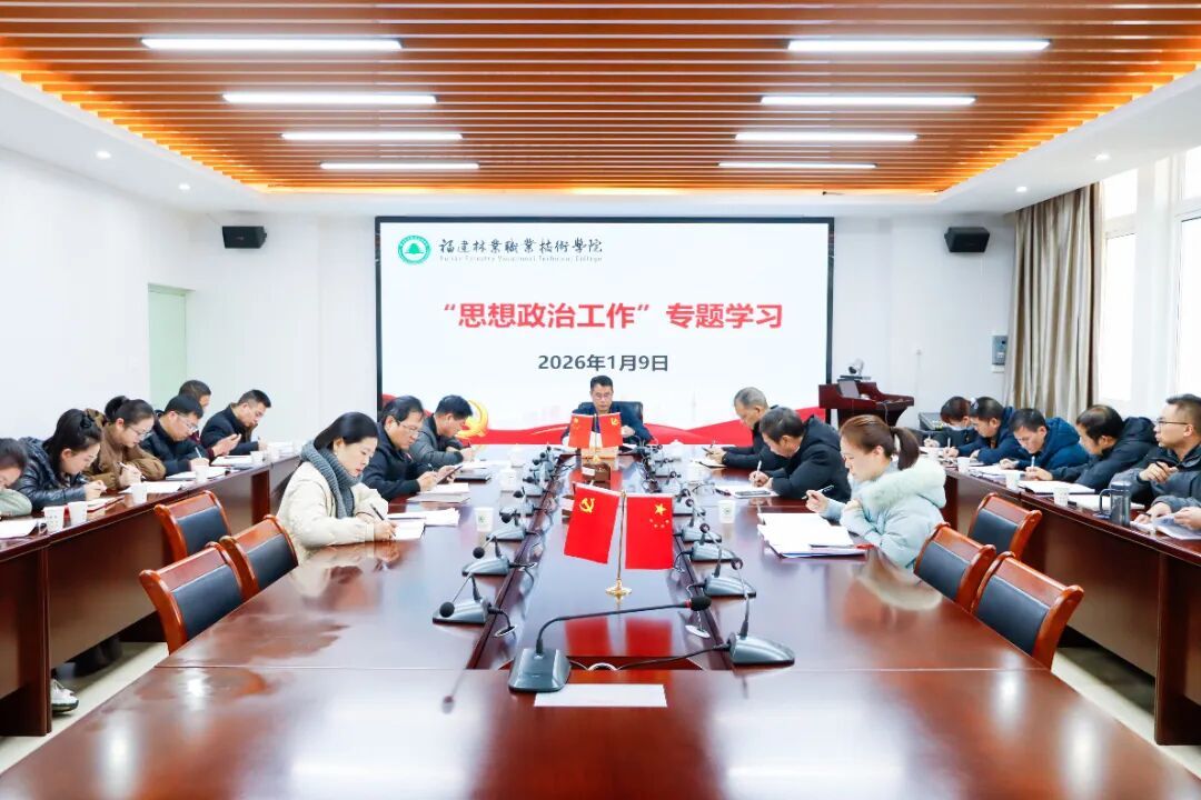 会议开展“思想政治工作”专题学习,陈建辉书记领学《福建省普通高校思政课教师队伍建设实施方案(2025—2027年)》和《全面加强新时代福建省高校辅导员队伍建设实施方案》。他强调,一要聚焦队伍建设,筑牢思政工作“主力军”根基。严格配齐建强思政课教师队伍,完成专职思政课教师足额配备,落实专职辅导员1:200配备标准,建立辅导员职业发展“双通道”。二要创新工作机制,激活思政育人“新动能”。改革思政课教师职称评聘机制,对师德师风存在突出问题的实行“一票否决”;建立辅导员工作量化考核体系,突出思想政治教育、学生管理服务等主责主业成效。三要压实主体责任,确保各项部署落地见效。建立“党委统一领导、党政分工合作、各部门协同推进”的工作机制,形成全员育人、全程育人、全方位育人的强大合力。