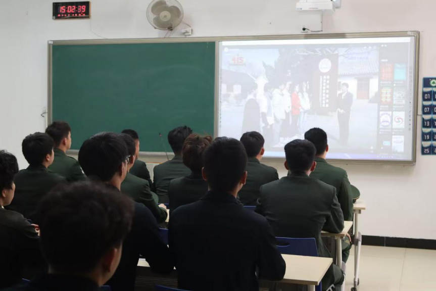 ▲大学生军事类社团军鹰协会退役士兵学生在教室集中观看“千万师生同上一堂国家安全教育课”主题直播