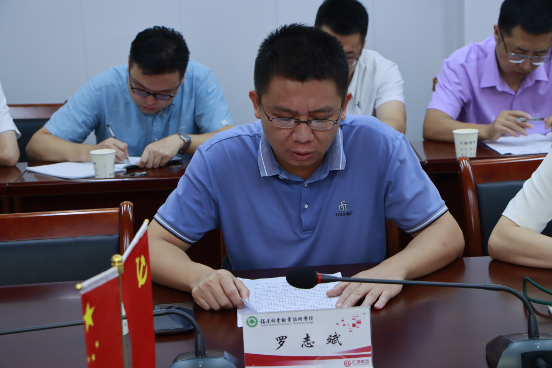 罗志斌结合培育创建全国党建工作标杆院系的经验做法,指出要以高质量党建引领系部各项事业高质量发展,就是要找到“五个到位”和“七个有力”的载体,坚持党建引领、坚持立德树人德技并修、坚持产教融合校企合作。