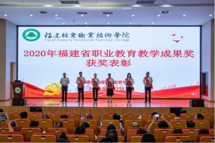 在2020年福建省职业教育教学成果奖获奖表彰仪式上,院党委书记万泉为荣获2020年福建省职业教育教学成果奖特等奖项目的《服务生态文明建设的校企合作共同体的构建与实践》团队成员绶带并颁发荣誉证书;院长刘文开为荣获2020年福建省职业教育教学成果奖一等奖的项目的《新时代下高职院校“体-制-链”育人模式的创新与实践》团队成员绶带并颁发荣誉证书。