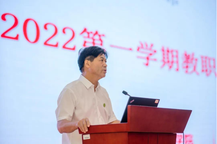 紧接着,院党委副书记、院长刘文开以《聚焦重点 统筹推进学院高质量发展》为题,对学院新学期工作提出新思路、新目标、新举措。刘文开院长首先对暑期仍然坚持在教学及工作岗位上辛勤工作的教职工表示感谢,随后对学院新学期工作进行了详细安排部署:一是要按年度党政工作要点推进学院各项工作。完成党委通过的学院年度工作要点是各部门特别是各部门党政负责人应履行的工作责任,要对标工作要点,制定强化措施,务求工作实效;二是要创造性推进福建省高水平院校建设。“双高计划”主题是高质量发展,主调是引领职业教育改革创新,学院要高标准定位、高水平设计、高效率实施、高效能产出、高质量发展;三是要做好新一届省级文明校园创建。文明校园是一个学校物质文明、政治文明和精神文明建设的最高荣誉,要严格按照创建要求和时间节点上传支撑材料;四是要落实落细校园安全稳定工作。坚决守住安全稳定底线,为学院可持续高质量发展提供基础保障。牢固树立安全发展理念,全面落实工作责任制,抓早抓小抓苗头,排查各种安全隐患,真正做到防患于未然;五是要认真抓好疫情防控,确保学院安全有序开学。疫情防控工作是当前的重大政治任务,要毫不放松抓好新冠肺炎疫情防控,统筹推进疫情防控和学院改革发展,落实好校园常态化疫情防控举措,压紧压实防控工作责任,确保师生员工健康安全;六是要明确学院“十四五”的办学定位与发展目标。“十四五”是学院构建新发展格局、全面开启新征程的第一个五年。学院“十四五”的办学定位是:服务生态文明建设、乡村振兴、中国制造2025等国家战略和新福建建设;发展目标是:以习近平总书记对福建工作提出的四个“更大”要求为指引,到2025年,办学条件总量指标达到本科层次职业学校设置标准,为提升办学层次奠定坚实基础。