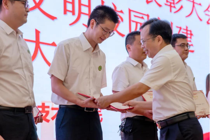 在第二届省级文明校园总结表彰大会暨第三届省级文明校园创建启动大会上,严绍裕副书记宣读《中共福建林业职业技术学院委员会关于表彰2018-2020年创建省级文明校园先进集体、先进个人的决定》;纪委书记林建斌为获得“2018-2020年创建省级文明校园先进个人”称号的10位老师颁奖;副院长谢金生为获得“2018-2020年创建省级文明校园先进集体”称号的5个部门授牌。