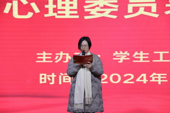 比赛最后环节举行了优秀心理委员表彰仪式。2023-2024学年来,各班级心理委员默默耕耘,在班级心理工作中热忱奉献,在关注同学情绪、倾听心声、排忧解难、处理危机等方面发挥了关键作用,成为校园心理健康守护者。经各系推荐、学生工作部审核,最终评选出44名优秀心理委员进行表彰。