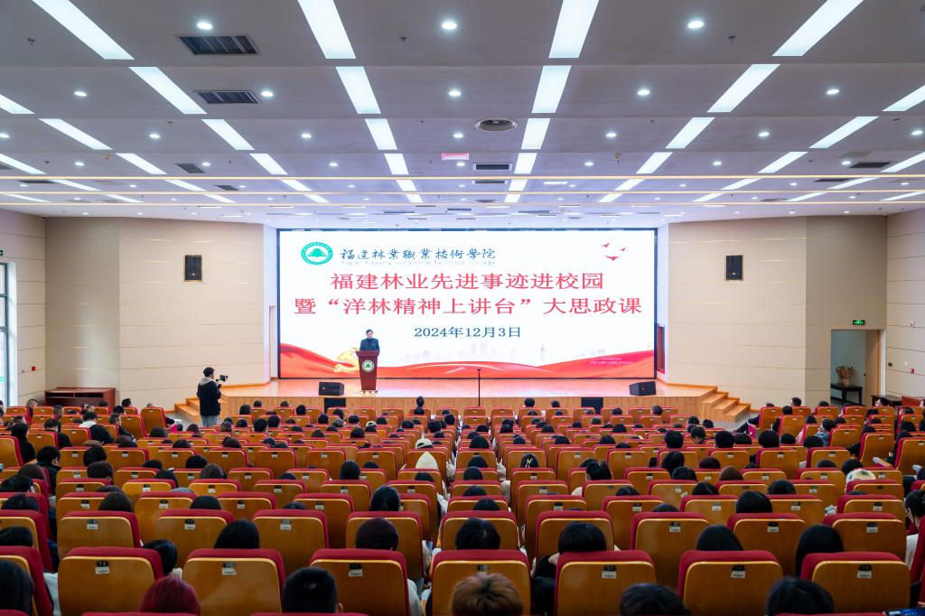 在福建林业先进事迹进校园暨“洋林精神上讲台”大思政课中,省洋口国有林场“洋林精神”宣讲员赖红英以《六十载躬耕林海山河 一甲子铸就洋林精神》为题,讲述了福建省洋口国有林场杉木育种科研团队六十年如一日,让洋林精神生生不息、薪火相传的事迹,深刻阐述了老一辈林业人坚守初心、赤诚奉献、久久为功、科研报国的“洋林精神”。