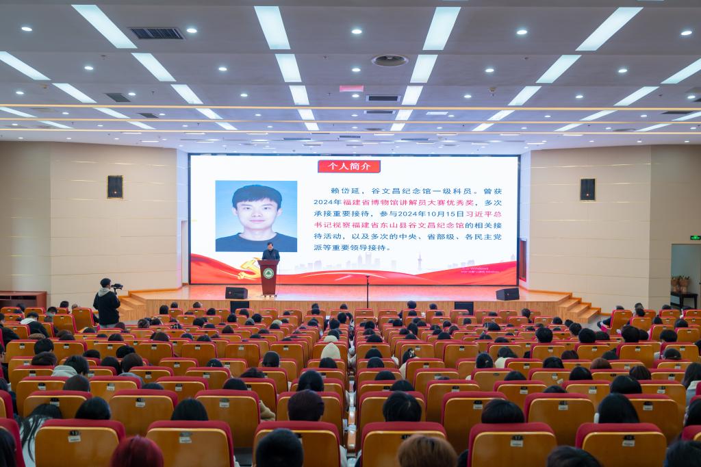 在“谷文昌精神”进校园暨“馆员讲思政课”大思政课中,谷文昌纪念馆“谷文昌精神”宣讲员赖岱延以《永不凋零的“木麻黄”》为题,深情讲述谷文昌带领干部群众培育木麻黄,为东山岛筑起防风固沙的屏障,把一座风沙肆虐的海岛变成生机盎然的绿洲的事迹。通过谷文昌同志的感人事迹,让全体师生深刻体会到什么是真正的为人民服务,什么是坚守初心、无私奉献的共产党员本色。