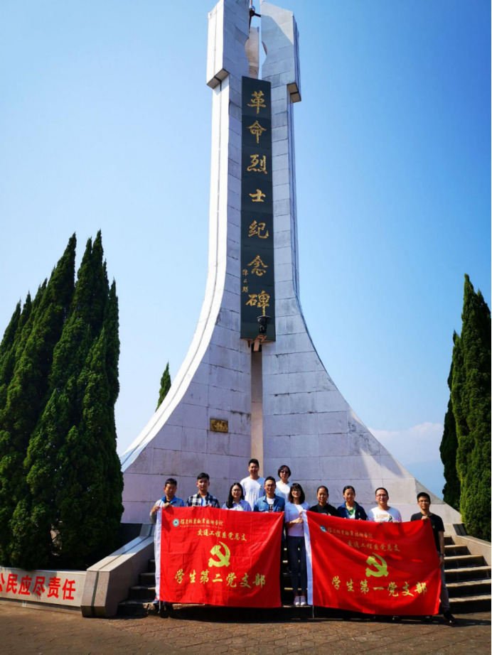 本网讯 为深入推进“不忘初心、牢记使命”主题教育,按照学院“不忘初心、牢记使命”主题教育的统一部署和系党总支主题教育实施方案的安排,2019年10月24日上午交通工程系教工党支部、学生第一党支部和学生第二党支部全体党员前往九峰山革命烈士纪念碑开展主题党日活动。学院副院长叶世森,交通工程系党总支书记李肇锋、系主任孙华以及交通工程系各支部党员参加本次活动。