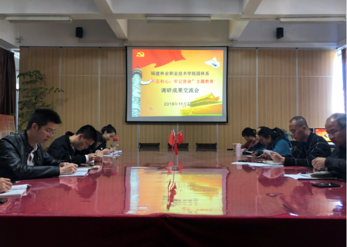 本网讯 11月21日下午,园林系在系会议室召开“不忘初心、牢记使命”主题教育调研成果交流会。系领导班子成员和全系教师党员参加交流会。交流会由系党总支副书记陈剑勇主持。