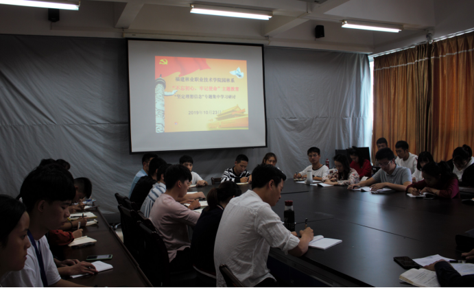 本网讯 2019年10月23日下午,园林系党总支在系会议室开展“不忘初心、牢记使命”主题教育“加强党的政治建设”集中学习研讨会。学院副院长严绍裕、学院“不忘初心、牢记使命”主题教育指导组成员叶新颖莅临指导。园林系全体师生党员参加了学习。此次学习由系党总支副书记陈剑勇主持。
