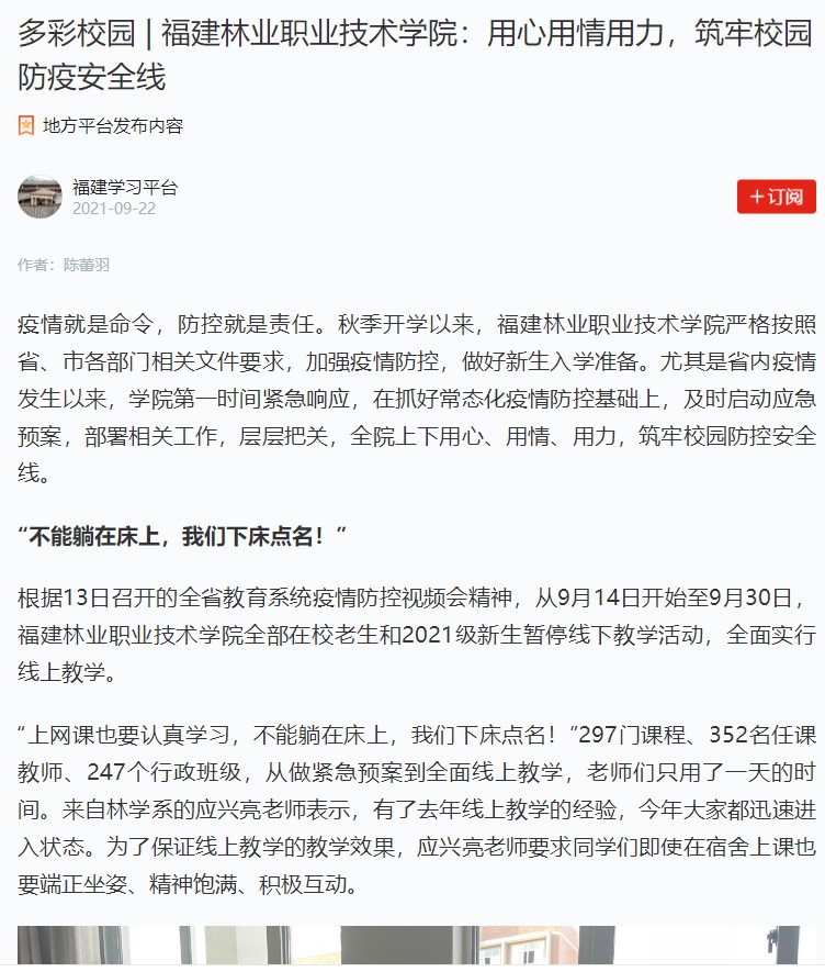 多彩校园 | 福建林业职业技术学院:用心用情用力,筑牢校园防疫安全线