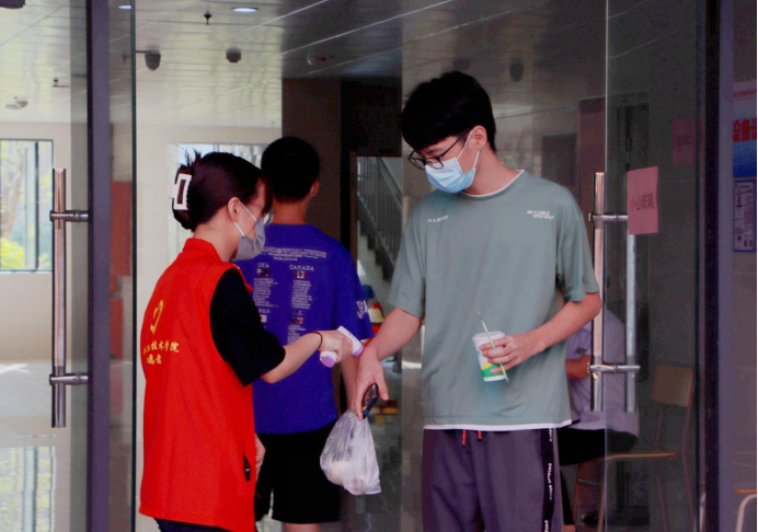 9月16日起,校园主干道、宿舍门口、食堂门口多了许多身穿红色马甲、手拿口罩的学生志愿者。学院全面加强公共场合佩戴口罩管理,要求全体师生在公共场合必须佩戴口罩,并实施对口管理。学院志愿者随时随地提醒同学们要佩戴好口罩,做好个人防护。江南校区学生7栋宿舍楼的宿管工作人员应夏英表示,所有外来人员她都逐一登记,回宿舍的同学也都要测温,疫情期间更要认真把好入门关,确保孩子们的安全。