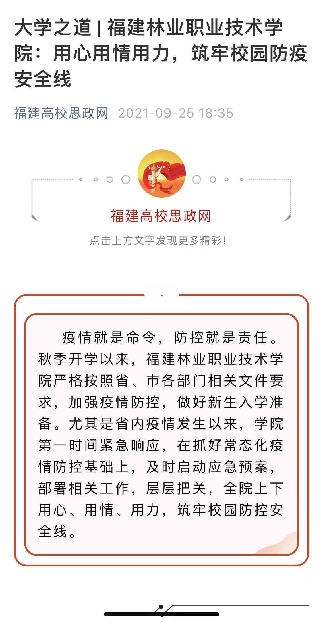 大学之道 | 福建林业职业技术学院:用心用情用力,筑牢校园防疫安全线