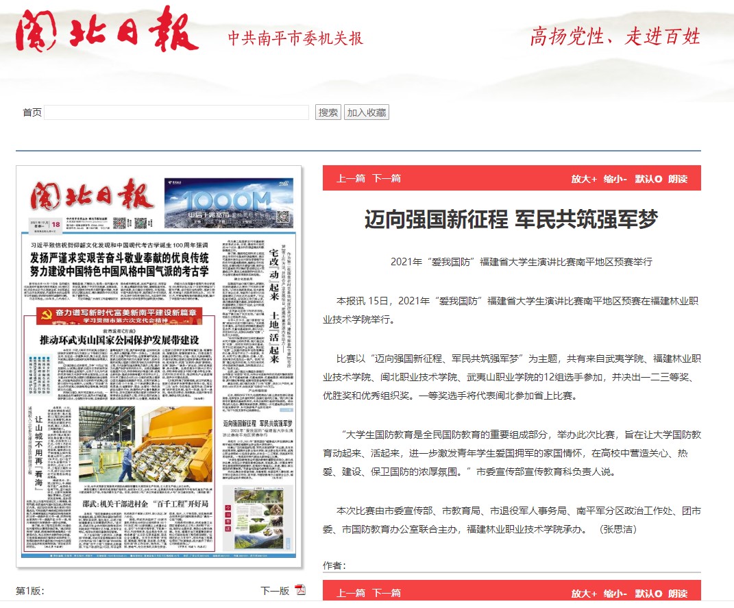 迈向强国新征程 军民共筑强军梦——2021年“爱我国防”福建省大学生演讲比赛南平地区预赛举行