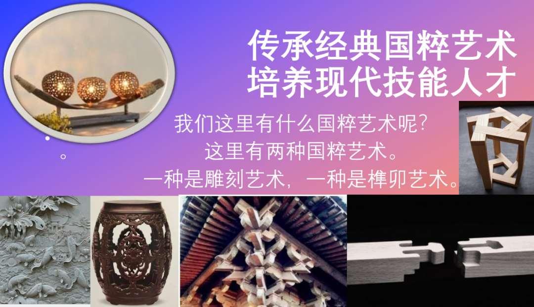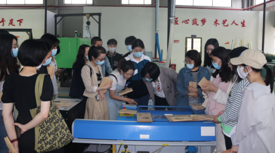 其次,利用家具设计与雕刻艺术专业的师生作品展厅作品和模型,让大家感受榫卯技术与雕刻艺术这两大经典国粹,并解释了为什么我们需要去继承这两大经典国粹艺术。