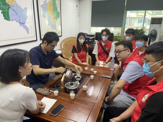 座谈会上,延平区河长办专职副主任林进军向实践队志愿者们介绍了延平区河流的大致情况和河长办的日常工作,为我们传授了如何保护生态环境与保护河道的经验,并就河长制实施以来的难点与志愿者们进行了深入的讨论,明确了后期长期合作的方向,双方将共同助力建设河更畅、水更清、岸更绿、景更美的水生态环境。