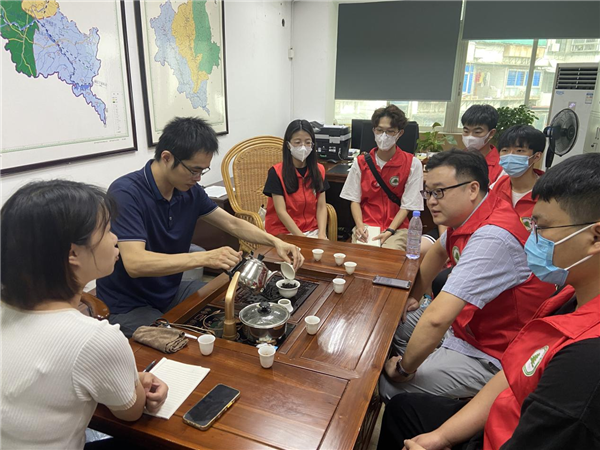 图为:“河小禹”护河实践队一行与延平区河长办工作人员面对面交流