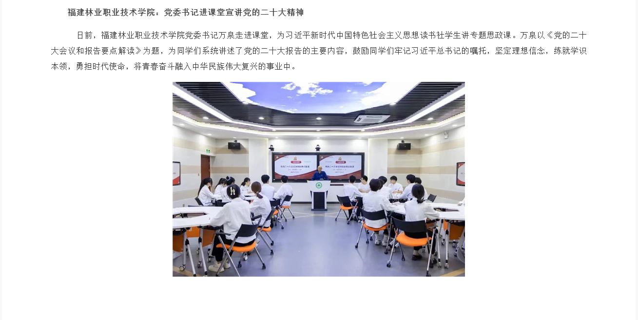 福建林业职业技术学院:党委书记进课堂宣讲党的二十大精神