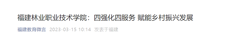 实施乡村振兴战略是以习近平同志为核心的党中央从党和国家事业全局出发着眼于实现“两个一百年”奋斗目标,顺应亿万农民对美好生活的向往做出的重大决策。福建林业职业技术学院坚守绿色初心,将学院职能与乡村振兴国家战略深度融合,实现了服务乡村振兴与高质量发展的同频共振。