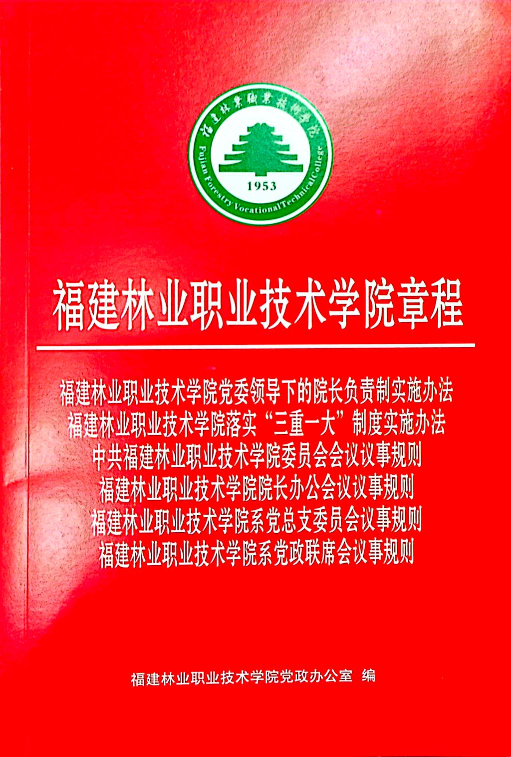学院坚持全面完善规章制度建设,形成以章程为核心的学院规章制度体系。一是科学设定制度体系分层分类架构,根据制度的地位、性质、重要性程度等,将学校规章制度从纵向分为四个层级,包括学校基本制度、学校重要制度、学校具体制度和各部门、单位印发的制度,确保各项工作有法可依、有章可循。二是坚持立、改、废、释并举,开展规章制度自查自纠,编制《福建林业职业技术学院管理制度精细化标准汇编》,定期梳理学院拟新制定、修订、继续保留、废止的制度清单,健全制度清理长效机制。三是及时在学院网站公开发布相关规章制度,为便于师生查询和利用学院制度,完成《福建林业职业技术学院制度汇编》,做好实时更新维护,推动校内规范性文件管理信息化和公开化。