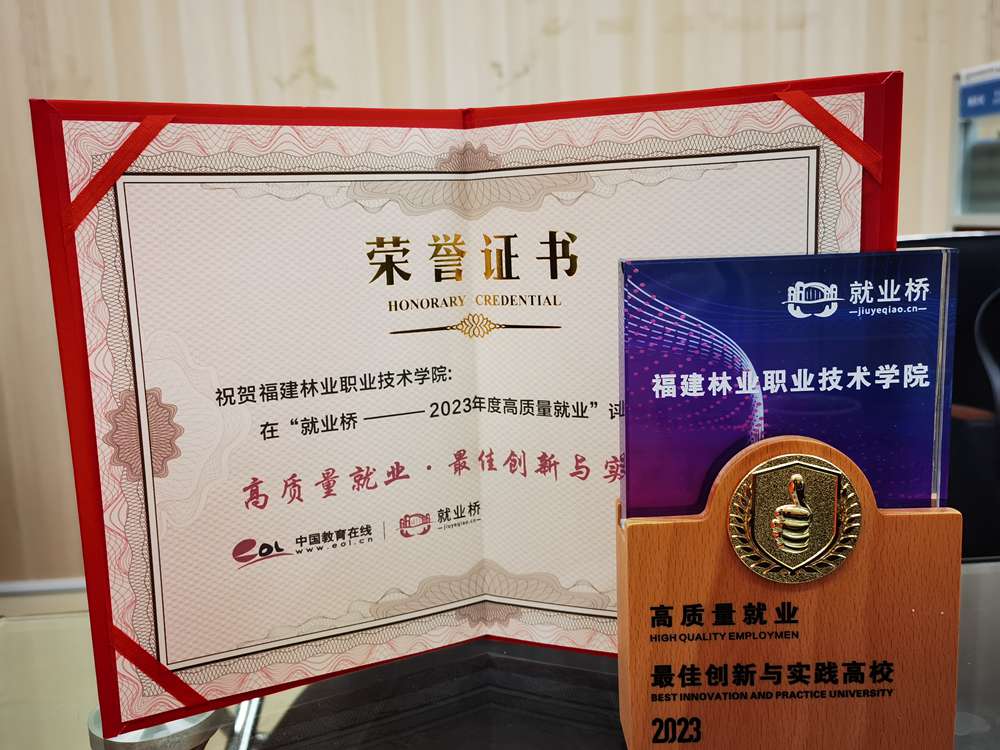 福建林业职业技术学院荣获“2023年度高校高质量就业最佳创新与实践高校”称号!
