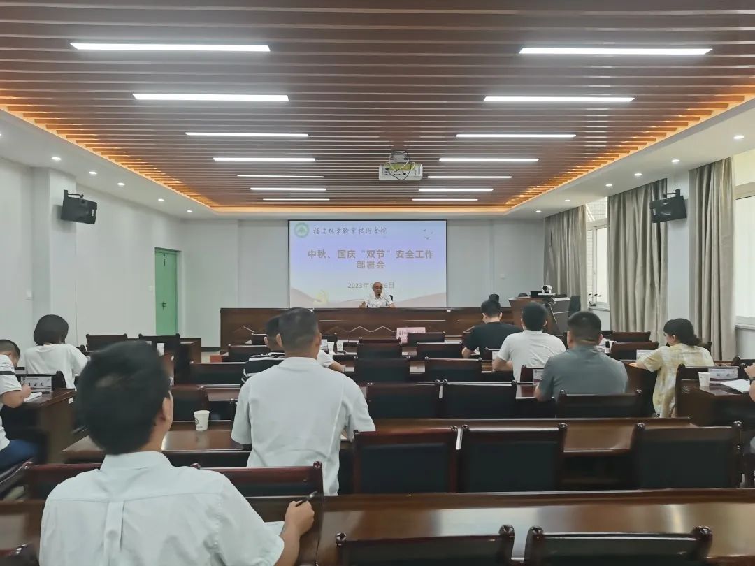 会后,院党委书记万泉主持召开学院中秋、国庆“双节”安全工作部署会,对学院“双节”期间及秋季学期校园安全工作进一步作了强调。他传达了《关于切实做好2023年秋季开学及国庆期间维护高校稳定工作的通知》文件精神,强调中秋、国庆两节将至,相关职能部门要突出工作重点,强化责任落实,认真学习贯彻会议和文件精神,及时将会议和文件精神向各系、各部门传达到位,从严从实从细抓好近期学院安全工作。