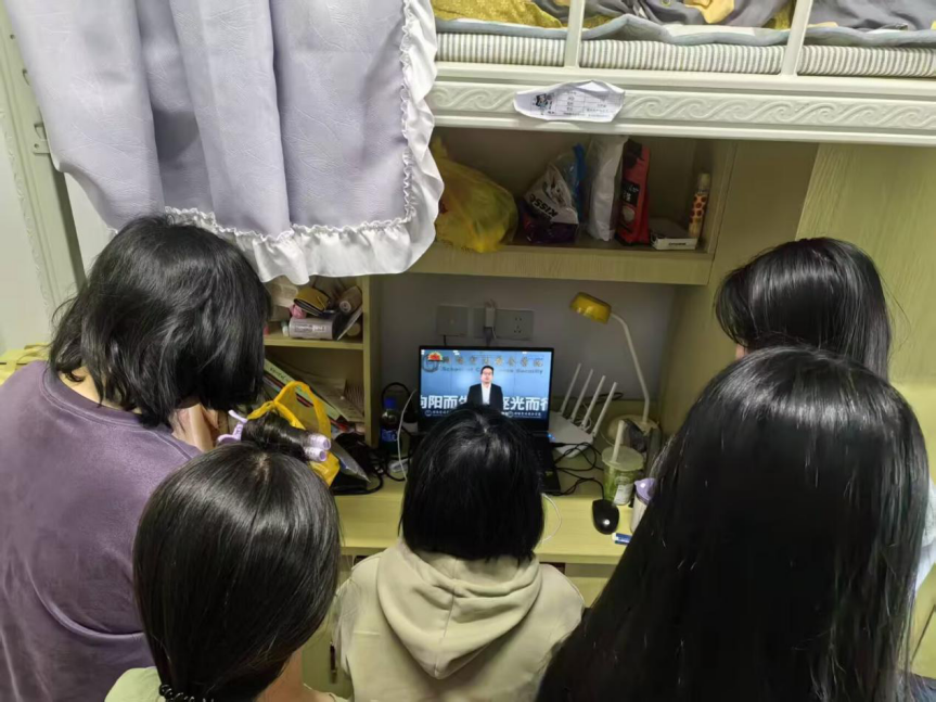 ▲智能制造系师生在一站式学生社区集中观看主题直播
