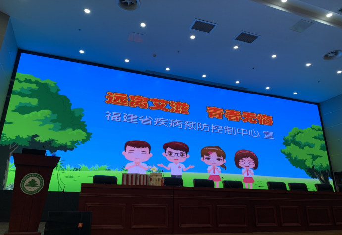 健康教育讲座上,方芳讲师播放了福建省疾病预防控制中心制作的“远离艾滋 青春无悔”的健康教育片。