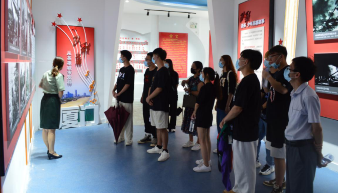 在工作人员的讲解下,我们知道了这所队歌纪念馆是通过梳理党领导下的少年儿童组织在各个时期传唱的红色少儿歌曲,追溯不同时期旋律中一脉相承的队歌精神,真实展现了各个时期儿童团、少先队的学习、生活、劳动、参与革命运动的生动历史,从一个新颖的角度解读中国少年先锋队的发展历程,展示了少先队光荣传统。参观完后实践团成员一起合唱《中国少年先锋队队歌》,重温那段红色经典,追寻难以忘却的红色印记。
