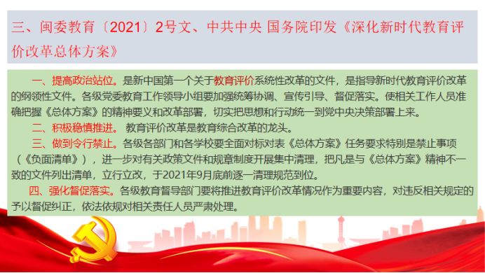 洪福兴书记带领全体党员深入学习《深化新时代教育评价改革总体方案》,尤其是严格禁止类、克服纠正类、控制限制类等负面清单(共27条)。洪福兴书记指出高校教师要深入学习《方案》,切实贯彻落实。