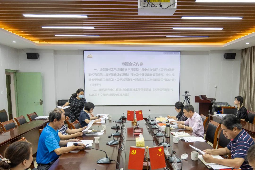 会议传达学习了中共中央办公厅印发的《关于加强新时代马克思主义学院建设的意见》,同时研究制定福建林业职业技术学院《关于加强新时代马克思主义学院建设的实施方案》。