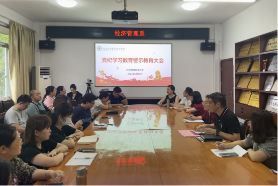 本网讯 为深入学习贯彻习近平新时代中国特色社会主义思想,推动党纪学习教育走深走实,6月13日,经济管理系党总支于经管楼408会议室召开党纪学习教育警示教育大会,会议由系党总支副书记(主持工作)王昉主持,系部全体党员教师参加会议。