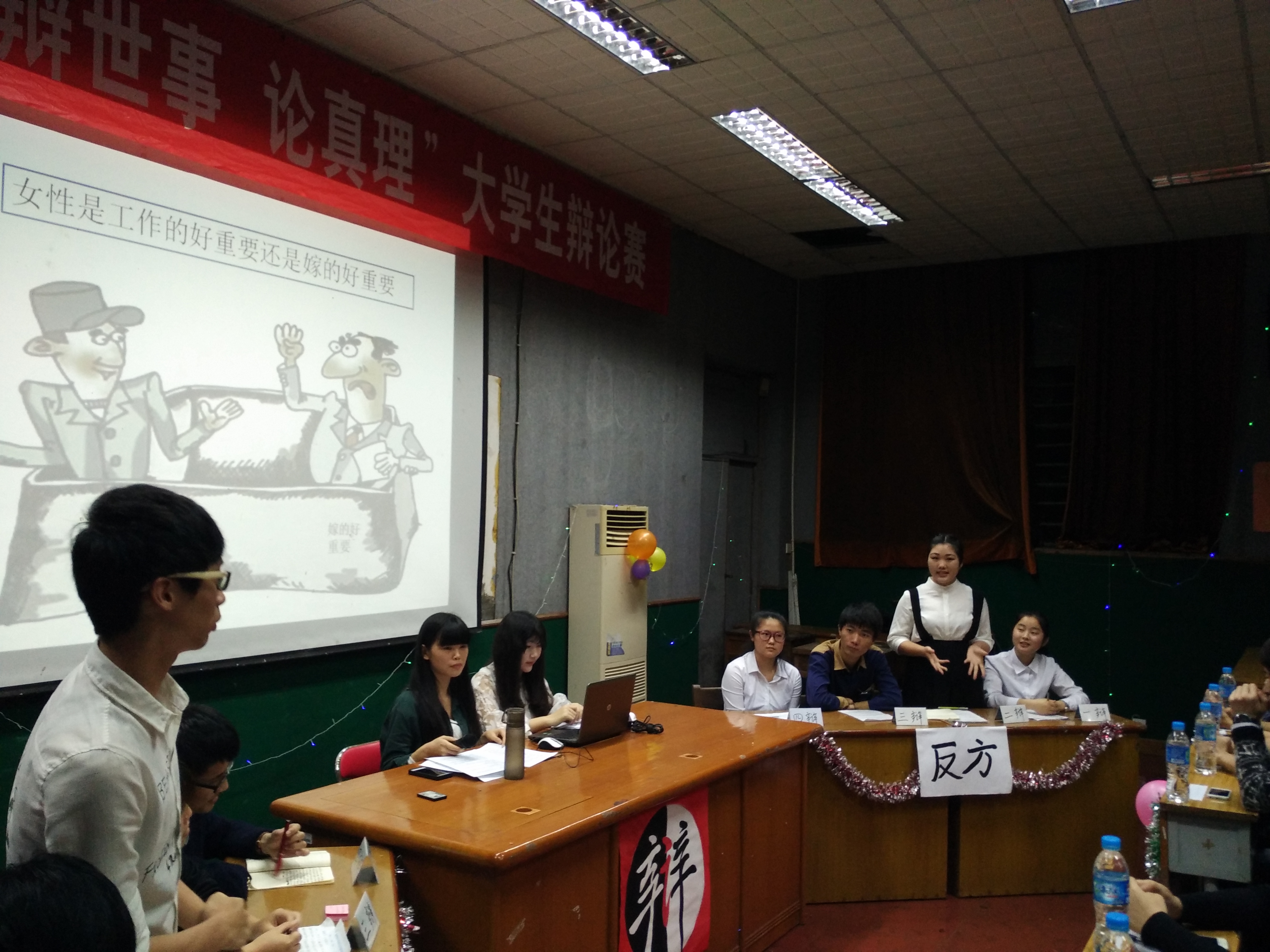 2016年4月14日,经济管理系第八届“辩世事,论真理”校园辩论赛在天麟校区第一多媒体教室如期举办。经过一个月初赛、复赛的激烈角逐后,共有4队组合脱颖而出,进入辩论赛决赛。本次辩论赛旨在加强学风建设,促进各班学风交流,丰富同学课余生活,活跃校园气氛,开拓同学思路,体现大学生风华正茂的精神状态。