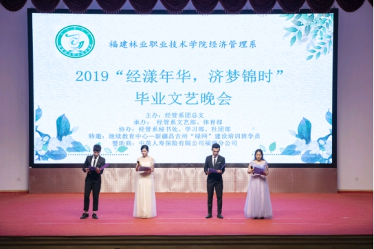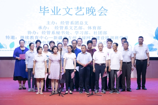 笑语欢声,吹响毕业号角;载歌载舞,镌刻离别思念,6月18日晚上七点半,由系团总支主办、系文艺部、体育部承办、系秘书部、学习部、社团部承办的“经漾年华,济梦锦时”经济管理系2019毕业文艺晚会在天麟礼堂拉开序幕,经管系党总支书记谢福荣、经管系主任蔡敏、经管系学生科长王昉、经管系黄雪媛、胡斌、叶丽丽、陈翔等老师出席本次晚会,同时,晚会特别邀请了新疆昌吉州“绿网”培训班的学员参与。