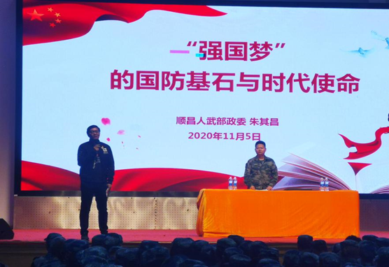 2020级新生军训期间,为培养大学生爱国情怀,增强民族自豪感,我校邀请了顺昌人武部朱其昌政委于11月5日晚在天麟礼堂举行“强国梦的国防基石与时代使命”主题讲座。