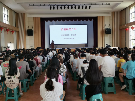 一年秋风来临季,又是一年迎新时。为了增强2021级新生对学校的了解,更快的熟悉校园、熟识文化传承、增强对专业的认识,促使其能够更好地融入新的学习环境,我系于10月16日下午两点半在天麟礼堂开展了新生入学教育系列讲座之校情系史介绍、学籍管理规定介绍、专业介绍及职业生涯规划。