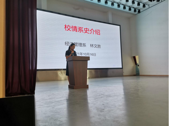 常言道:“欲知大道,必先为史”。校史记载着学校的发展轨迹,一所大学的历史沿革,如同人一样,记录着生命的历程,留下文化的印记。林文胜主任从“校情系史”出发,详细介绍了我校建校67余载的优良传统和风雨历程。带我们了解了“敬业、吃苦、务实、进取”的天麟精神,对新生寄予了殷切的嘱托与期盼,希望新生能感受林职院的文化底蕴,时刻以天麟精神鞭策自己,开拓进取,谦逊做人!