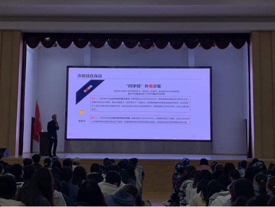 刘小杭老师则对大学生防诈骗和信息安全进行了知识普及,用幽默的语言和生动的案列让同学们了解法制知识,并提高了防诈骗意识,为同学们成长路上的人身安全保驾护航。