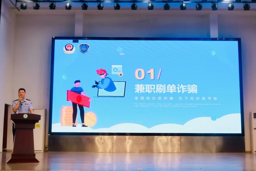 讲座伊始,王警官以近期发生在高校学生群体中的典型电信诈骗案例为切入点,抽丝剥茧般剖析案件的作案手法、受骗心理及高发特征,进而聚焦本次讲座核心,系统讲解如何精准识别并有效预防电信网络诈骗。王警官聚焦大学生群体中高发的四类诈骗,结合受害者真实受骗轨迹,层层拆解诈骗分子的作案逻辑。
