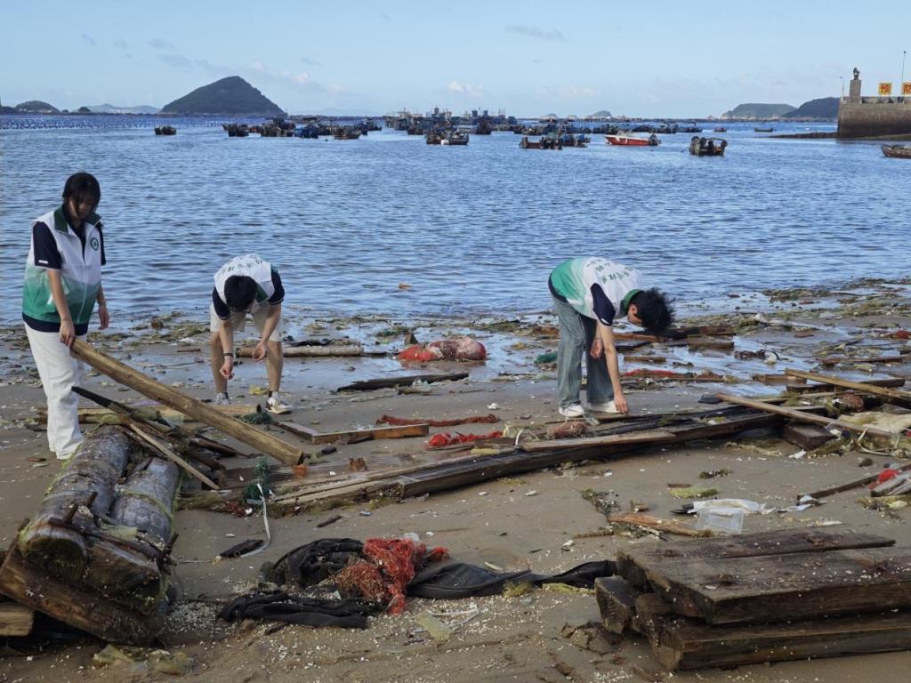同时,在连江县同心村海岸线旁,经济管理系“林小羽”志愿团队开展清洁海岸垃圾的志愿活动,在暑期社会实践过程中展现了新时代青年志愿者的生态文明担当。本次志愿服务秉承“奉献、友爱、互助、进步”的精神,通过清理海岸垃圾维护海洋生态环境,以实际行动践行绿色发展理念。