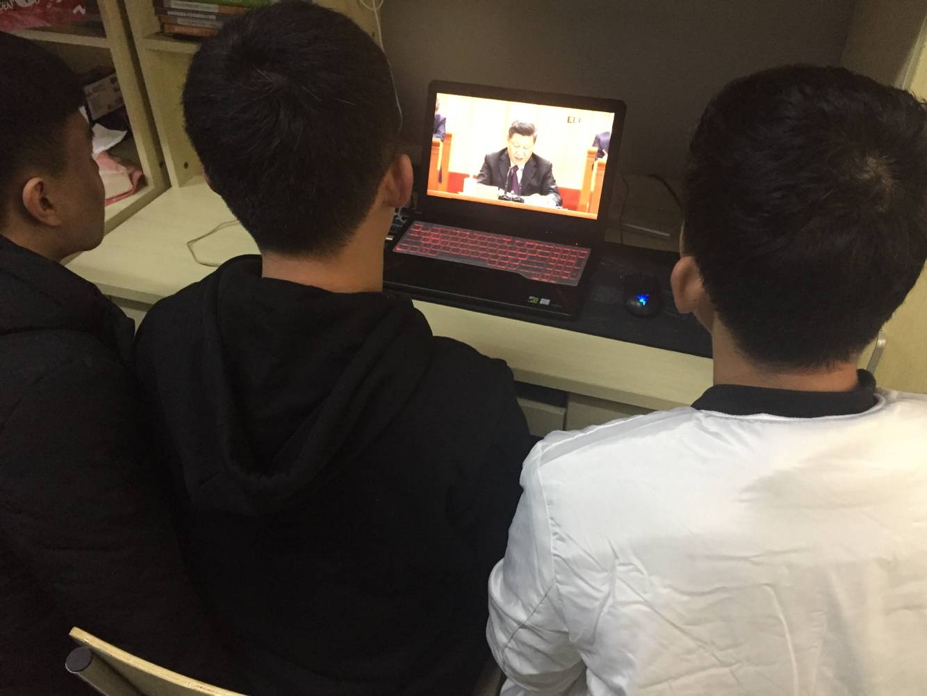 同时,学生党员、入党积极分子自觉组织宿舍同学观看大会盛况,积极带领同学们学习、感受40年的辉煌历程。40年众志成城,40年砥砺奋进,40年春风化雨,广大师生在以习近平同志为核心的党中央坚强领导下,统一思想、凝聚共识、坚定信心,不忘初心、牢记使命、不懈奋斗。